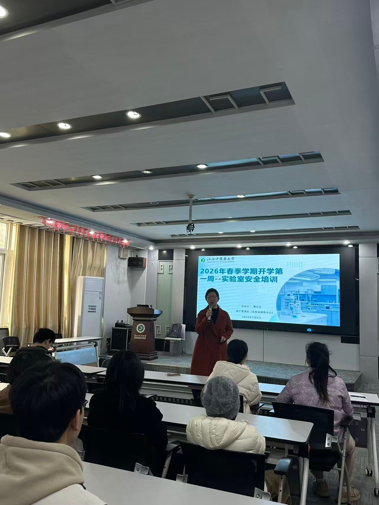2026年3月19日,中心于实验楼B209举办2026年春季学期实验室安全培训专题讲座,中心副主任祝婧主持会议,民族药学专业全体学生参加培训。